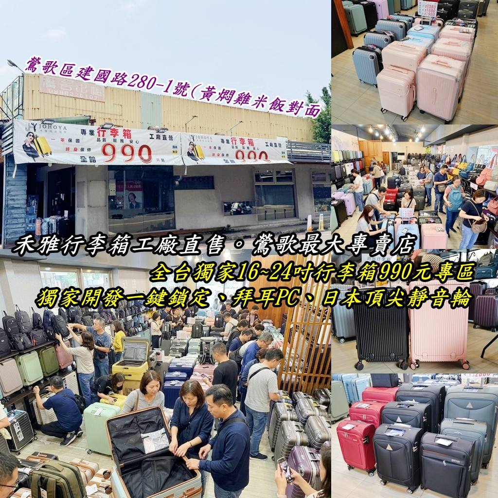 『鶯歌行李箱包專賣店』禾雅行李箱工廠直售|百款行李箱聯合清售|行李箱最低990元起|鶯歌最大場行李箱門市|登山包、電腦包、男女潮流包款通通最低590│一年保固終身保修!