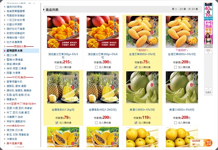 老實說我當天真的是買的超快樂的,一指神功火力全開啊!!! 因為每個東西都好便宜又好好買,因為MOMO很愛吃水果,所以當下就馬上轉台到產地直供水果,產地直送更新鮮,當下買了下殺58折的芒果!! 夏天怎可以缺少芒果這美味的水果呢,當然還有鳳梨跟美濃瓜都不能錯過,每種水果的都有大份量跟小份量的選擇,非常適合平常就只有我跟MOMO在的板橋,有時候買太多真的會很煩惱,但是又想多吃幾種水果,所以愛買這樣提供小份量的選擇真的很讚!! |