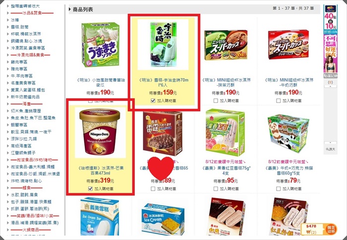 接下來點到冷凍食品區的時候,不小心瞄到冰品區,就又默默的給她不小心點了下去XD,好啦,夏天買個冰應該也不是很過份的事阿!!!