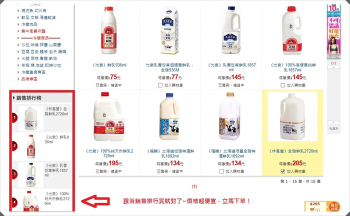 這一點真的讓我非常非常的驚訝,其實很多網路商城很不喜歡販售生鮮或是即期的商品,因為會有商品運送時間的問題跟保存期限的問題,所以在網路上雖然什麼東西都可以賣,但是除了剛剛說的冰淇淋以外,鮮乳也是我第一次看到在網路上有販售,這也算是愛買線上購物的網路獨家販售了,真的是太強大了!!!