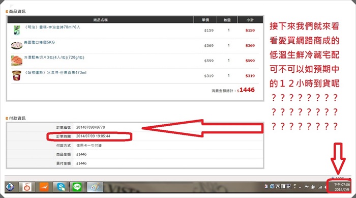 另外一提的就是小寶在訂單完成的時候特別的紀錄一下時間,為什麼要紀錄當下的時間,因為愛買誇口 北北基桃12小時到貨服務!!! 當然不能光說不練一定要有圖有真相!!!