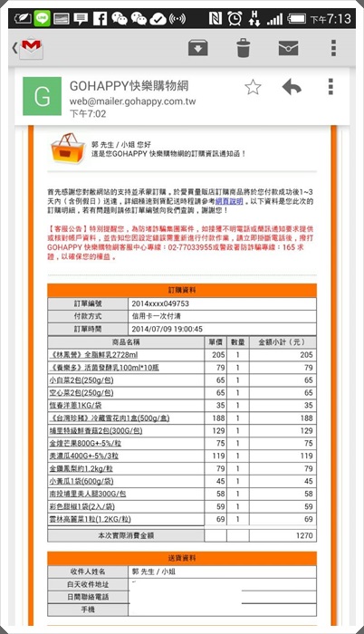 立馬收到信箱來信告知剛剛的購買商品細項跟金額等等,不只這樣而已,過一下又收到手機簡訊告知確認收到訂單,還提醒我不會要求去ATM做任何操作,防止詐騙集團的惡意詐欺,小細節上也都處理的相當的貼心,接下來重頭戲就讓我們開始來看看送貨到達後的開箱產品吧!!!! |