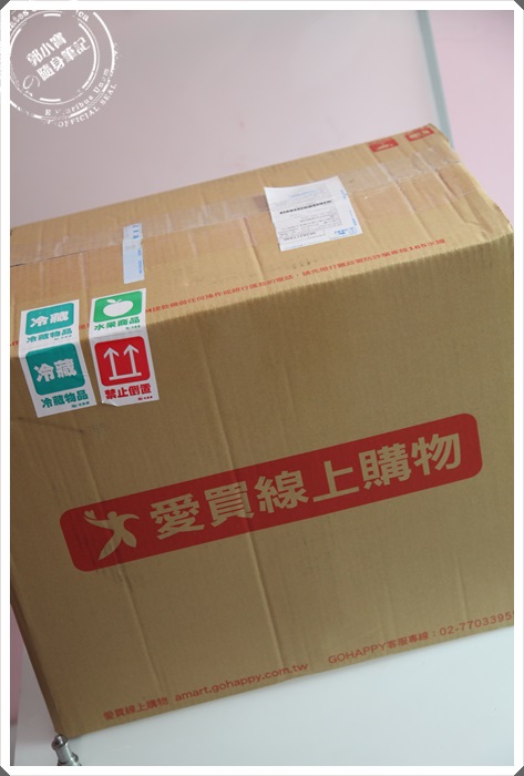 接著來看看冷藏的箱子,同樣外箱印有愛買線上購物字樣,冷藏箱子大了冷凍的兩倍,放在我攝影桌上幾乎快放不下了。 |