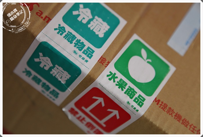 還有貼紙告知貨運人員裏面有水果跟禁止倒置的貼紙,品質更是有保障, |