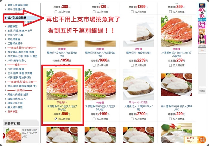 差點忘了跟大家分享一個小技巧,每個網頁跟專區裡面,左邊都會有紅框內圈選的銷售排行版,清楚明白的一眼就知道哪些商品是大家在搶的,對我來說這些大概都是很多人比價完下手的商品,跟著搶就對了啦XD