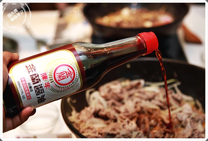 這天兩位大廚為我們示範很多家常菜色,所以幾乎整個室內空間的香氣十足,一踏進這裡面的時候瞬間感覺肚子就餓了起來,最開心的就是黃景龍師傅還教了一手如何用金蘭醬油製作壽喜燒,這一招我超甲意的,因為每次在家想吃壽喜燒的時候,都還要去買壽喜燒醬,真的是要跑到很遠的地方而且價錢也不便宜,現在可以採購金蘭醬油就可以輕鬆吃到壽喜燒了!!! |