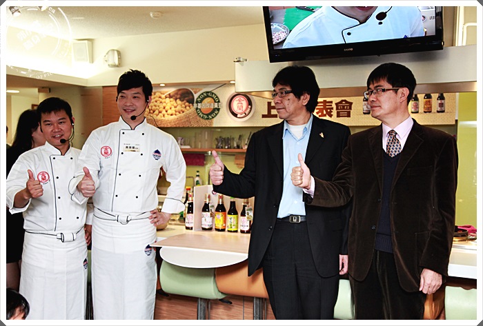 記者會就在金蘭醬油營業部韓嘉靖經理跟學界教授的帶領下,與大廚師黃景龍、溫國智師傅揭開了序幕。