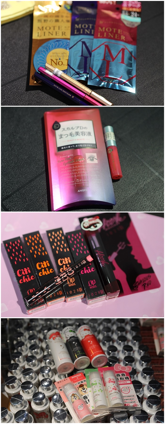 這邊還有日本超夯渡邊直美代言的ANGFA絲凱露D實力派美睫精華液,而且價位才350元就可以入手了,這個不多拿個一兩根真的對不起我老婆了,還有MOTELINER大和匠筆眼線液三色都有得買,這一組也是超熱賣的商品。