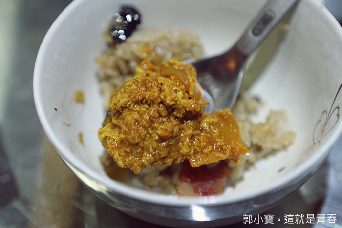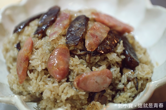 港式的臘味飯搭配台灣古早味油飯非常特別,我們一群人第一次把米糕全部吃光,這香港過年相當傳統的一道主食信手拈來變成很多特色的一道菜,除了主角的臘味雙腸以外,米糕裡面的肉絲、香菇、蝦米、紅蔥頭也提味不少,搭配臘味雙腸整體的入口香氣層次非常豐富。 |