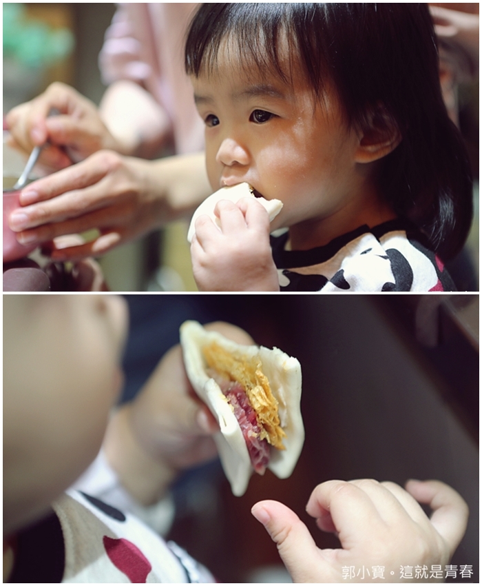 麵皮夾上火腿跟酥脆的烤方,連我女兒都吃到一個停不下來的境界,瞬間就被我們這群人搶食清空。 |