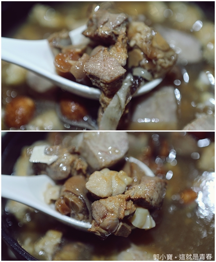 最後獲得一致好評的佛跳牆也非常推薦,裡面的料甚至比我們在餐廳點的佛跳牆還多,鴿蛋、滷豬腳、魚皮、干貝、栗子、帶皮雞腿肉、魚頭、炸去骨小排、鮑魚、花菇一樣不少,用料非常大方也很敢下料,隨便撈都是滿滿的料,加上這佛跳牆的湯頭喝起來不會有太重的濁感,算是清爽的佛跳牆湯頭。 |