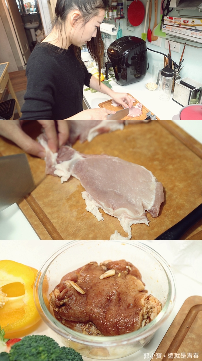 炸豬排是我老婆知道我愛吃,所以常常會在家裡面炸豬排給我吃,但是每次都要用一堆油炸,有時候還會被燙到,但是有了這一台氣炸鍋真的就變得超豐變得,先將買來的豬排斷筋然後醃製。 |