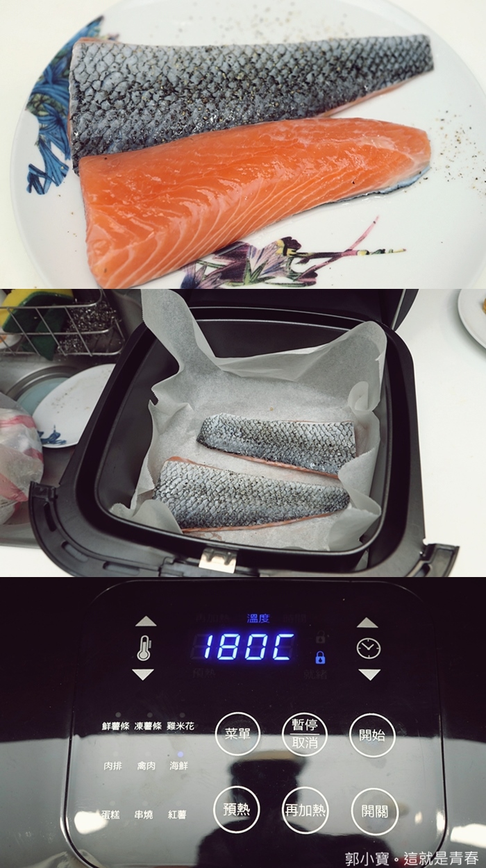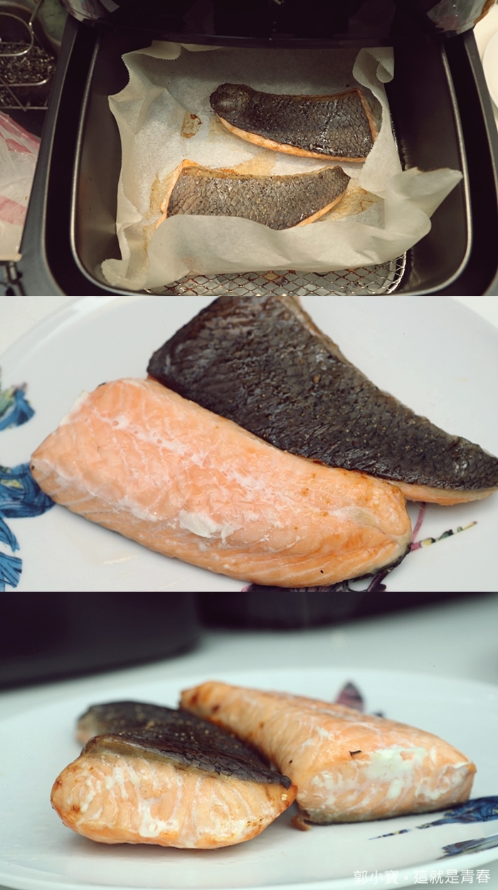 氣炸鮭魚也是很多人很多人喜歡做的一道,我們家都會固定買鮭魚肉,我比較少買切片,因為我女兒目前很愛吃鮭魚,因為只有兩歲所以我都很擔心她吃到魚刺,老實說如果有夏普水波爐的話,我應該還是比較推薦水波爐最好用,但是水波爐的價位太高,氣炸鍋就是一個便宜料理鮭魚的好選擇。