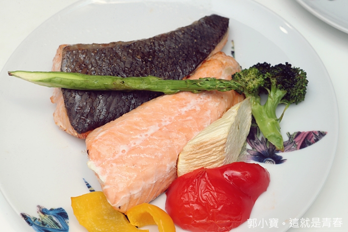 氣炸鮭魚排使用180度12分鐘,時間一到如果不是喜歡的熟度還可以繼續加熱,真心覺得貴夫人的氣炸鍋很強,連魚皮都可以看起來的那麼嫩口,還有厚實的鮭魚肉呈現的色澤也很美。 |