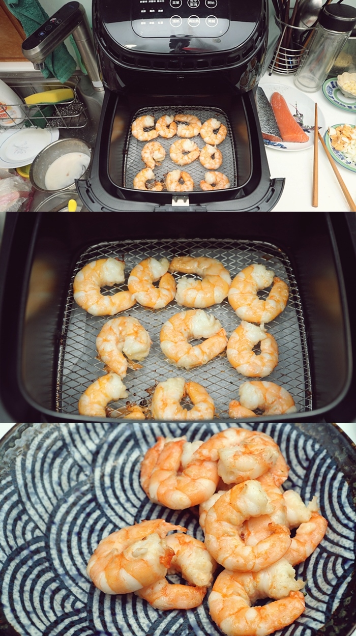 接下來這一道菜會比較多程序,這一道很常出現在我家,之前都是太妃直接下廚做的,這次就來挑戰看看用氣炸鍋做出美味的流沙沙拉蝦。