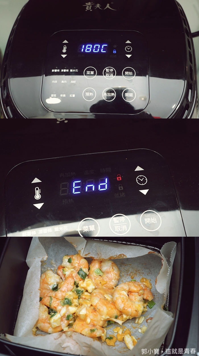 氣炸完的蝦子就讓我已經蠢蠢欲動了,這氣炸鍋不管處理什麼食材顏色真的都很漂亮,是我目前看過不管炸任何食材都可以精準的掌控溫度的一台。 |