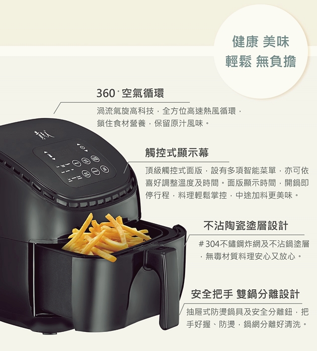 告別傳統大鍋油炸,遠離油煙無需看守,降低油脂攝取量,免除清理油鍋的煩惱,低油減脂新時尚,外酥內嫩好美味