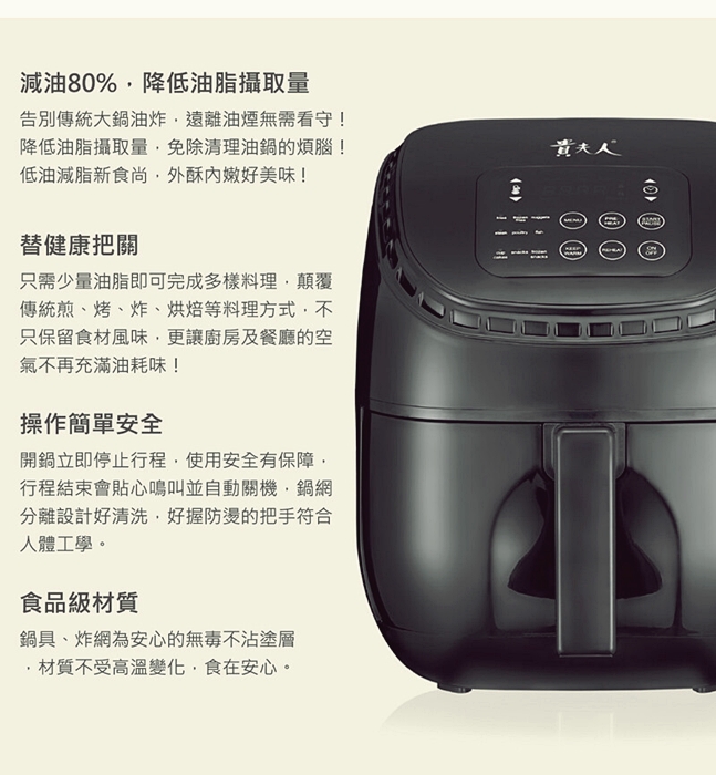 不過這次接到貴夫人的廠商直接跟我詢問我就馬上答應了,因為國產品牌貴夫人的口碑一直很好,10幾年前在購物台的銷量一直很好,我身邊很多朋友都有買過貴夫人的商品,用了十幾年還在用,加上這一台氣炸鍋我已經玩了一個月,真心非常喜歡才決定要開團。