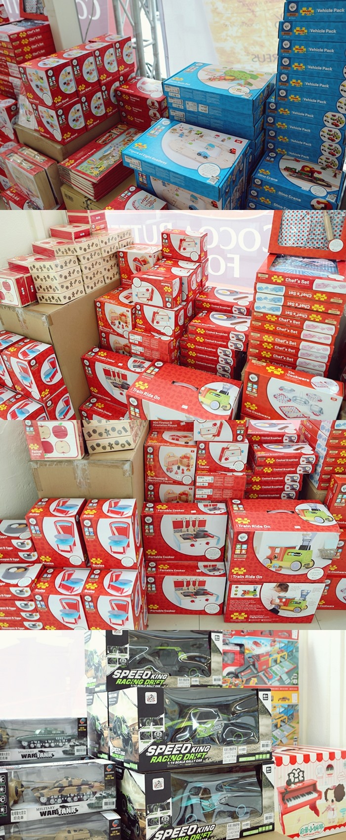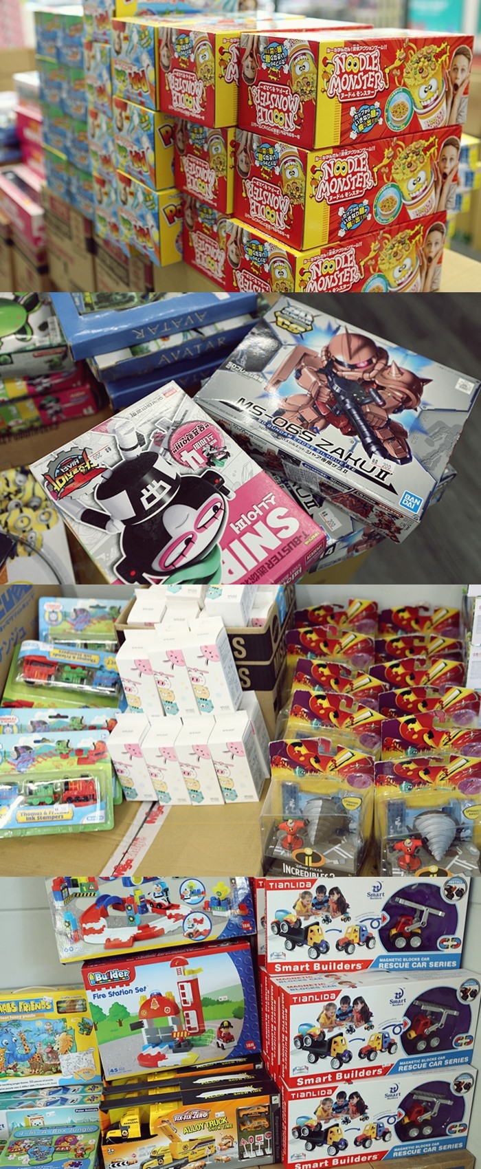 不管是小男孩還是小女生,幾乎都準備得非常齊全,這些玩具幾乎大大小小的堆疊再一起,而且很多玩具都是這兩年剛發布的新玩具,款式都超新的。 |