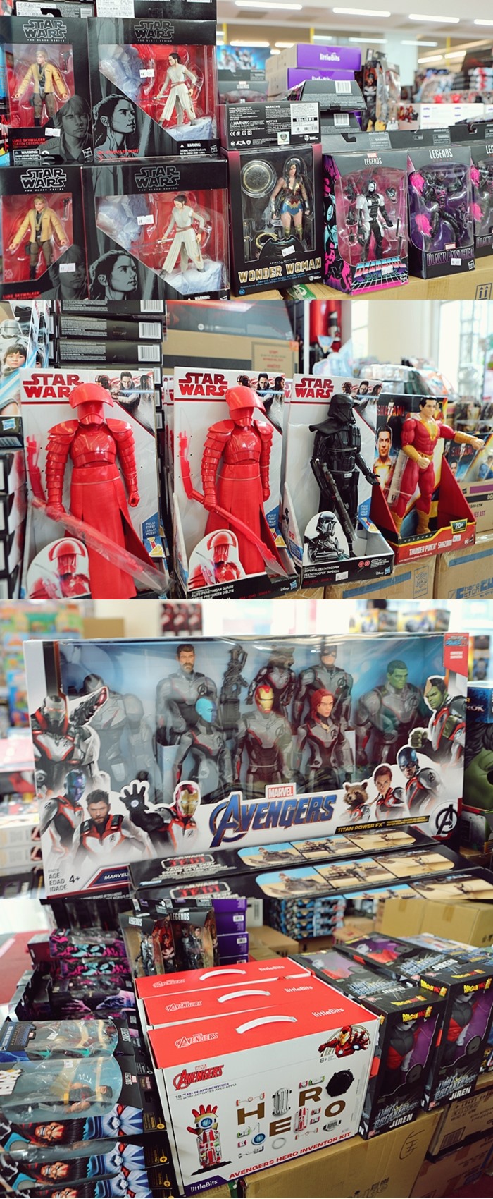 一整組的復仇者聯盟還有星際大戰系列,也有DC系列很受歡迎的神力女超人,各式各樣的人偶玩具都是很值得帶回家,妳能想到的人物這邊都可以找到。 |