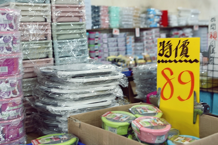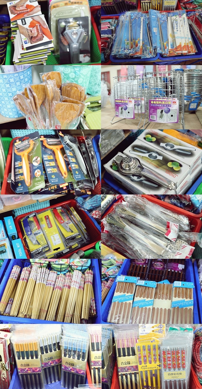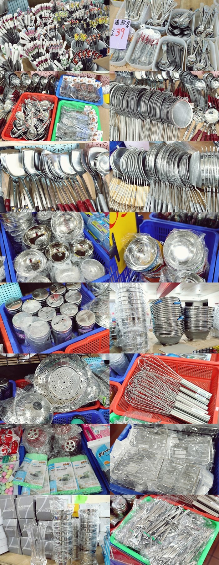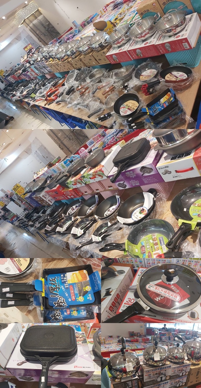 廚房用品更齊全,鍋碗瓢盆應有盡有,大大小小的鐵製餐具,這一區真的婆婆媽媽的最愛,從沒想過這些商品只要39元就可以帶回家。 |