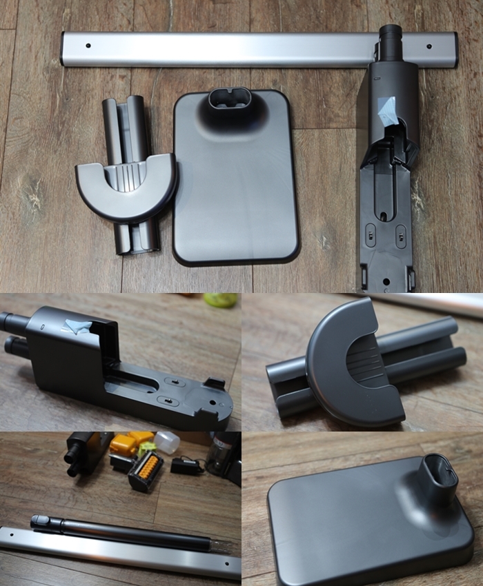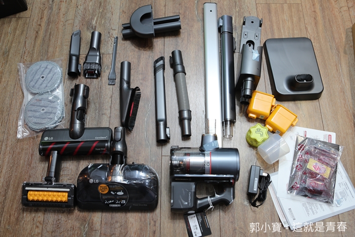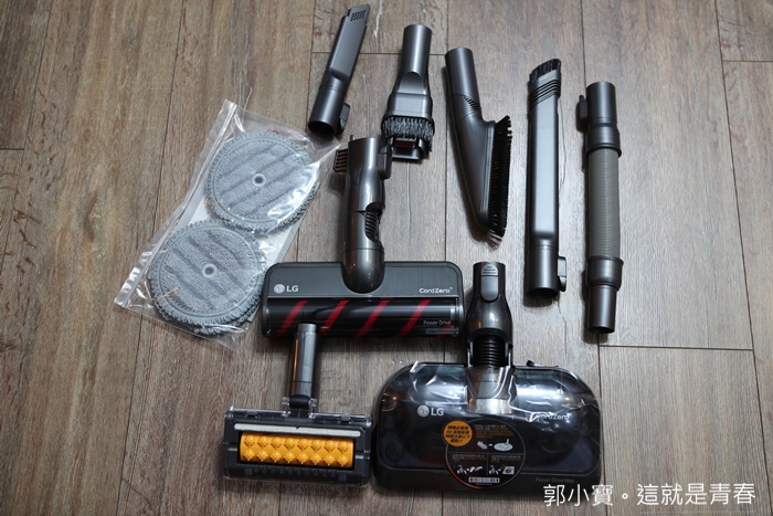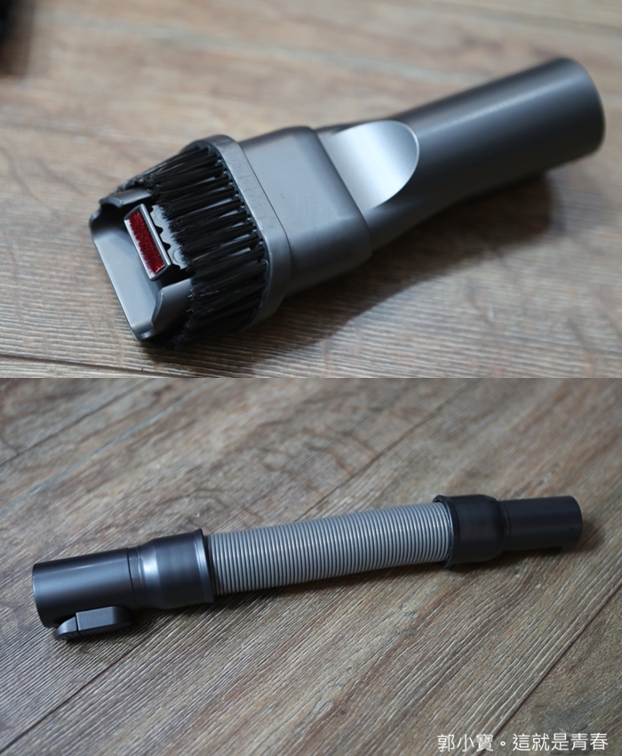 這個套組算是大全配了,剩最頂配的寵物吸頭沒有入鏡,三大吸頭通通有在裡面,濕拖頭、塵蟎吸頭、跟地板吸頭通通都有備配在裡面以外,還有整理汽車跟角落的縫隙吸頭也一應俱全,最好用的就是這次配備的伸縮軟管,不會打掃到腰酸背痛,其他的吸頭我就比較少用到了。 |