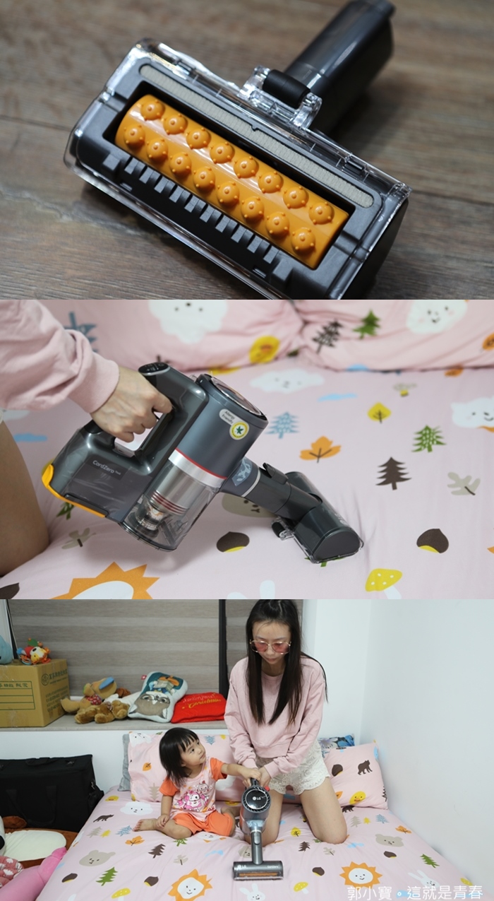 另外很重要的塵蟎吸頭,塵蟎吸頭我們都固定收在房間的抽屜裡面,通常只要拿主機進來安裝,A9K的吸力搭配塵蟎震動吸頭超好用,一機多用的設計就是讓人愛上她的主因,節省很多收納空間,我以前幾乎是一個功能就買一隻,而且自從有了Cola以後,這塵蟎吸頭就很常用,很多小朋友的過敏都是因為塵蟎的關係。 |