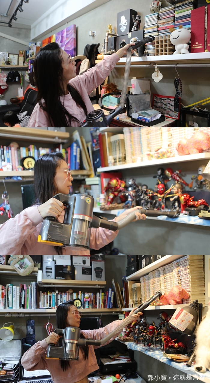還有我的書櫃跟公仔也都是使用二合一的毛刷處理,通常這些都是直接放在我的工作桌旁,所以還滿容易積灰塵的,對於清潔不規則的物品時非常好用的吸頭。 |
