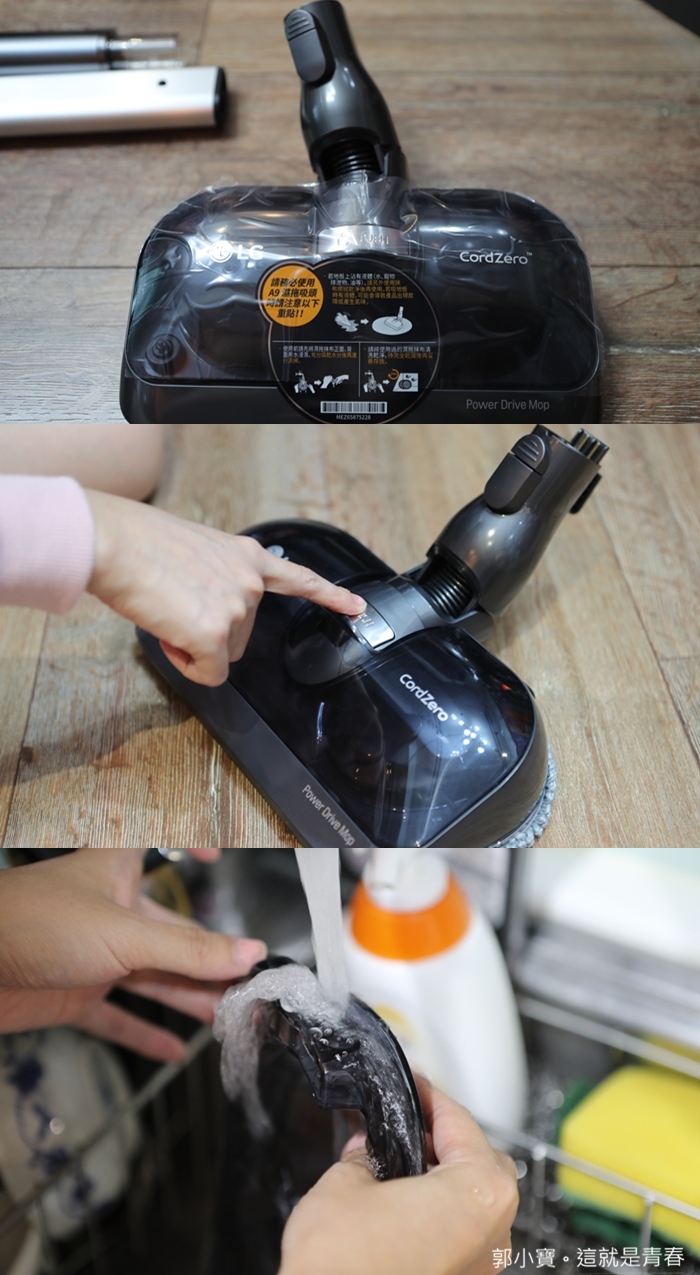 木質地板可以使用一段水量較少,濕拖吸頭我覺得很好用,而且A9K系列把濕拖頭的缺點又強化了,拖起來的感覺很像是以前小時候在用打蠟機打蠟的感覺。 |