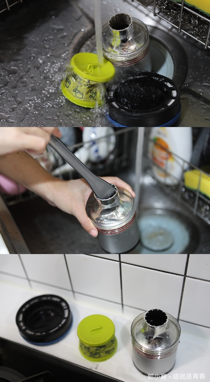 水洗氣旋濾網、微塵濾網、HEPA濾網可以用水清洗超方便,微塵濾網要確保風乾在使用,不然會有很奇怪的味道,金屬濾網也可以洗得一乾二淨,之前金屬濾網內部有時候水沖不掉,這次搭配贈送的小刷子可以刷的超乾淨,這樣細菌也不會累積在裡面孳生。 |
