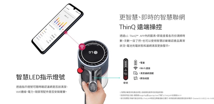 最後可以從手機上的LG APP上面看到A9K的各種資訊,例如每個月清潔幾次,總共花了多少時間等等的資訊,充電完畢也會示警。 |