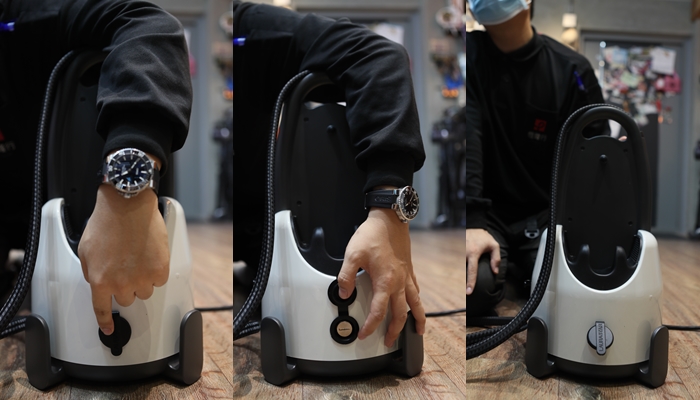 Laurasta風靡全球的主因就是獨家的「乾式蒸汽技術」,透過鍋爐加壓產生強勁的高壓蒸汽,噴射速度比一般蒸汽熨斗快15倍,同時將水分子擴散1600倍,釋放出超細緻乾式蒸汽,能快速穿透織物、撐起衣物纖維、不殘留水份,也因為這樣噴出來的是蒸汽不是傳統的水蒸氣,水蒸汽因為帶有水,在高溫下被噴到會覺得非常燙,但是純蒸汽就只會有一股熱風,當下我本來還不信,直到工作人員將方向對著自己的臉噴,當場驚嚇到我了,還真的咧!!!