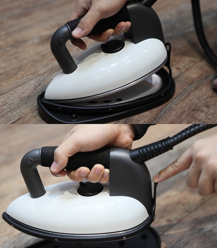 Laurasta的熨燙機也是顏值極高,且最讓人喜歡的是操控非常簡單,握把前方兩側都有按壓的蒸汽噴發鈕,不管妳是慣用右手還是左撇子都方便自如,非常貼心。