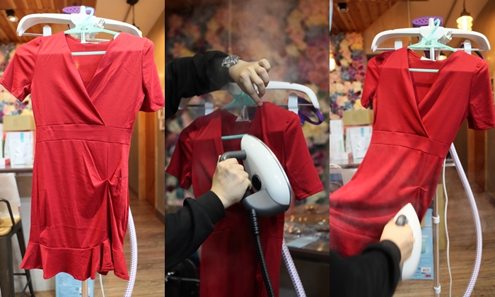 當天立即馬上拿出一件皺巴巴的衣服請解說人員幫我們試看看,貞的三兩下就完全燙平了,一整個超好用的啊!!!! |