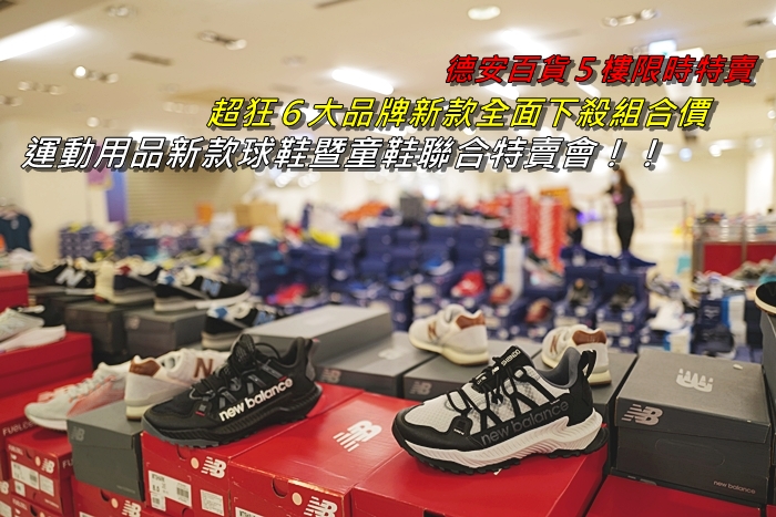 這次的球鞋特賣會真的超狂,超多百貨內的高單價品牌鞋通通通都進駐了,還有大家最熟悉的耐吉、美津濃等通通都有,這次的地點就在大家都非常熟悉的德安百貨五樓,雖然德安百貨裡面有幾家暢貨中心,但是我繞了一圈比了一下價格,還是五樓的特賣會場最划算,全部都是新款球鞋,很多都還在門市架上販售中的款式,這次通通都要回饋給大家!!!