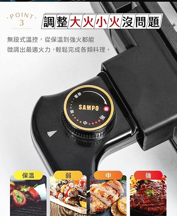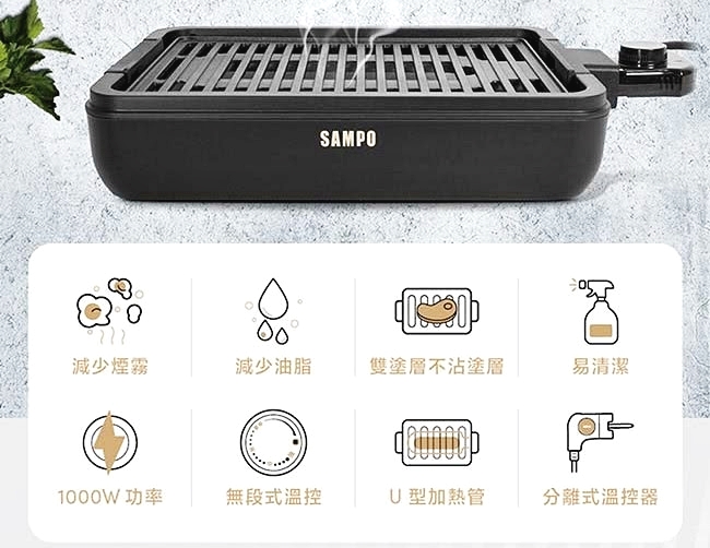 這一款SAMPO聲寶不沾電烤盤主打減煙、速熱、不沾。 |