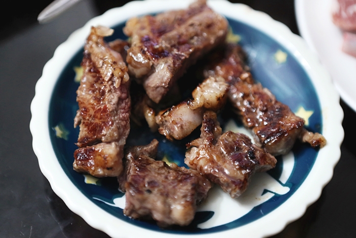 我們每次烤肉其實都只調整到中火就很夠力了,烤肉那滋滋作響的聲音真的太療癒了。 |