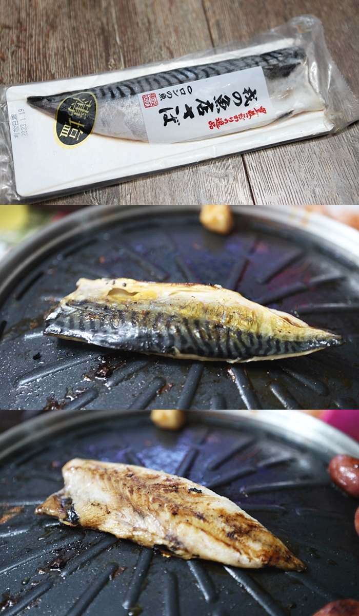 鯖魚基本上不需要再調料了,直接烤完直接入口就超美味,鯖魚的刺也很少,肉多又厚! |
