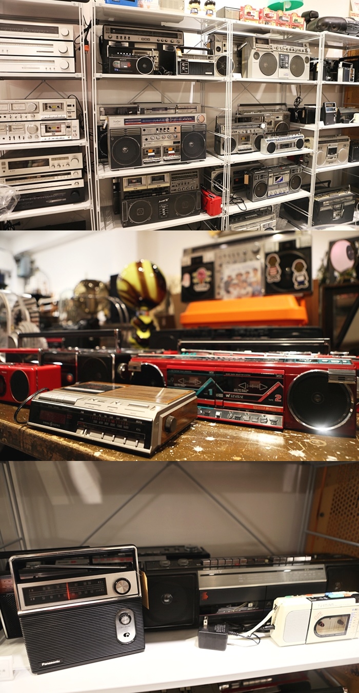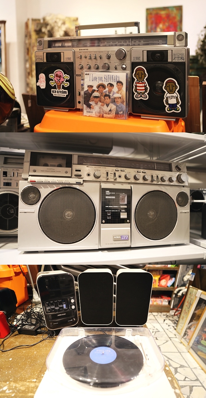 最吸引我的就是一整個架上的老音響,這在我年輕時代每個街頭人手都要上肩扛上一條才較流行,這嘻哈街頭文化不可抹滅的歷史,很多老音響收音機都保存的很好,古俬也有配合專門修這些老家店的師傅,商品販售都會保固。 |