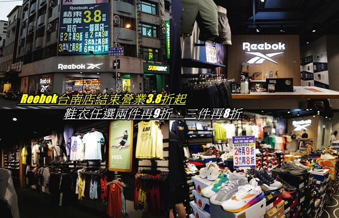 陪伴大家許久的Reebok台南民族店因為疫情的衝擊下,很不捨的要結束營業了,結束營業前最後的出清活動真的超便宜,全館3.8折起大放送,幾乎全部新款的鞋子也通通下殺拋售,趁著最後結束營業的一段時間,大家真的要趁機去搶一下便宜,當天拍照的時候人潮非常多!