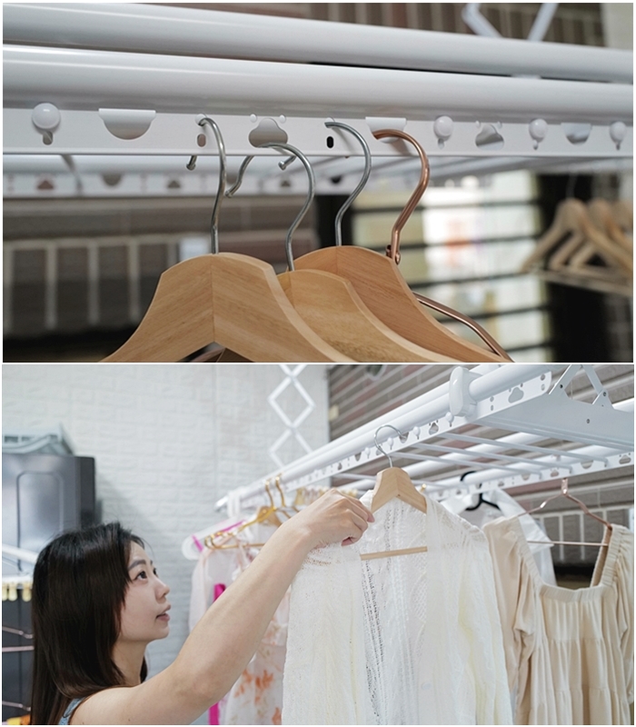 貼心的曬被桿設計也相當靈活,平常沒使用的時候可以向上收納起來。 |