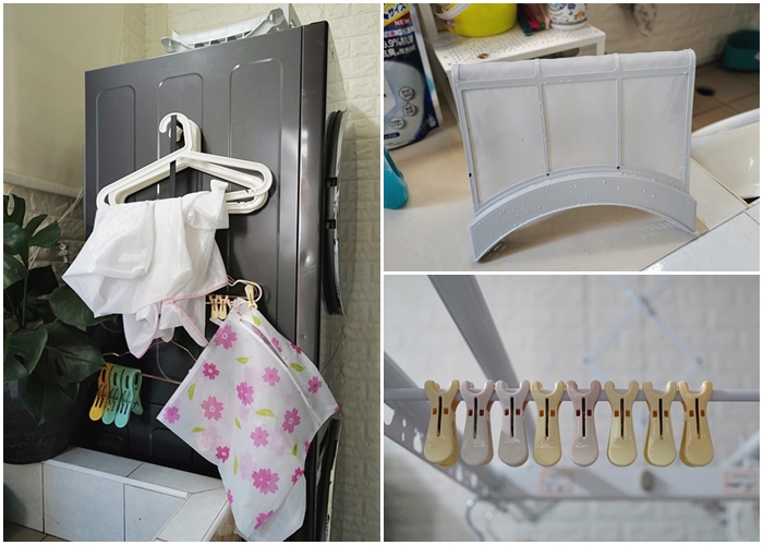 以前不管是洗衣機濾網清洗後還是洗衣袋、夾子等等都亂塞在洗衣間各個角落,所以就顯得整個洗衣間都非常雜亂,塞著塞著洗衣間又變成凌亂不堪了。