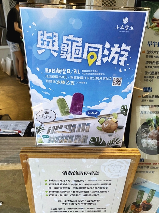 『小本愛玉小琉球旗艦店夏日優惠』小本愛玉年度回饋|與龜同游夏日優惠|凡消費滿250元,公開分享並且打卡就送冰棒乙隻