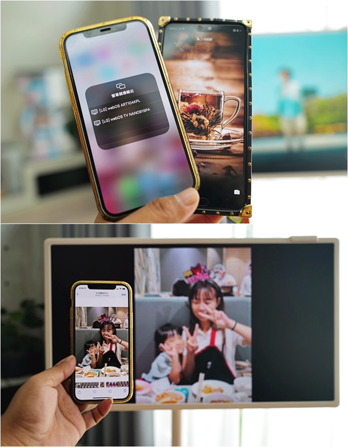 鏡像不只是使用手機投射在螢幕上,對於老人家來說是不可或缺的存在,像寶爸寶媽年紀大了,有時候看手機都瞇著眼睛看,跟旅行團出去玩拍了一堆照片,現在回家跟我們分享照片都直接投射在LG StanbyME 閨蜜機,划手機螢幕大他們也舒服許多。