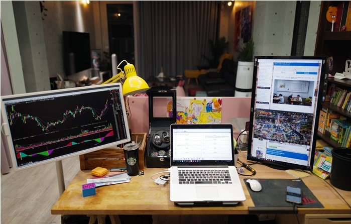 對於網路工作者的我來說,螢幕是不可少的,本身我工作都是使用筆電+一台翻轉式的螢幕,以便我修圖、打字、剪片等等的需求,多了閨蜜機還可以讓我即時看一下股票資訊跟我的遊戲,超級方便的,尤其LG StanbyME 閨蜜機就像是一台獨立的電腦,可以應付我額外的其他需求,而且又不會占據我的桌上空間。