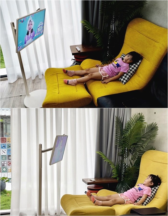 有客人的時候也可以直接把LG StanbyME 閨蜜機推到客房,就不用每間客房都買一台電視了,不然每間房間都要掛一台電視相比起來真的超划算。