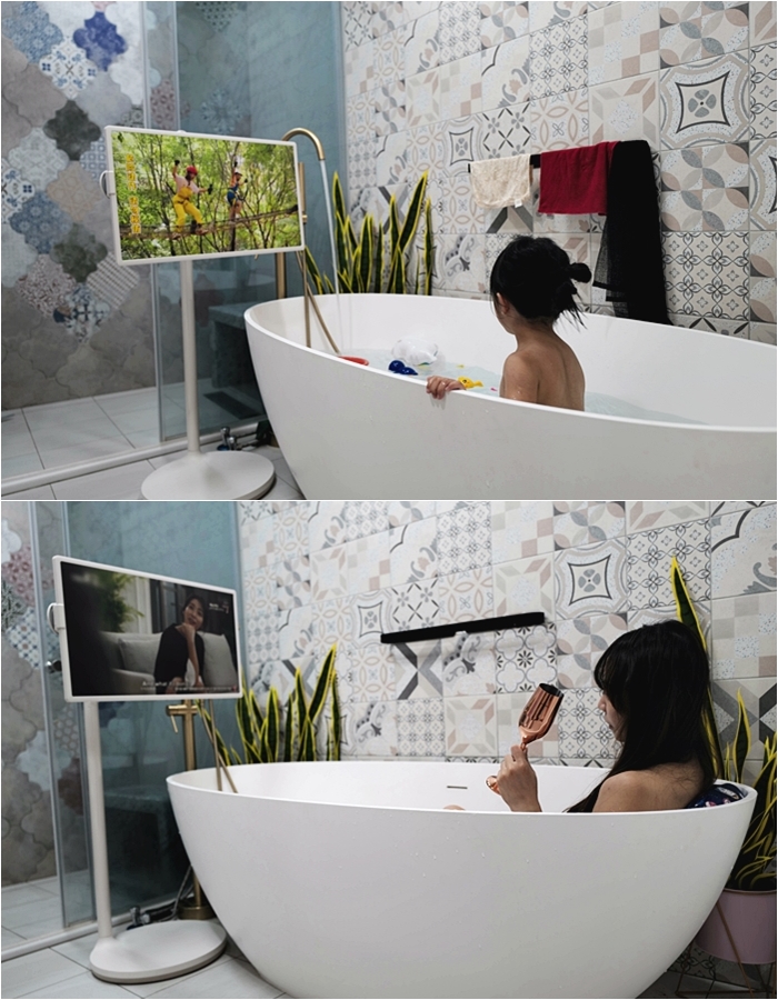 當然洗澡也不能錯過LG StanbyME 閨蜜機,以前裝潢浴室的時候有想過要不要安裝一台電視,可以邊泡澡邊看電視,尤其太妃每天的時間真的很有限,她必須把握每個時間追劇,可移動的LG StanbyME 閨蜜機真的超方便。