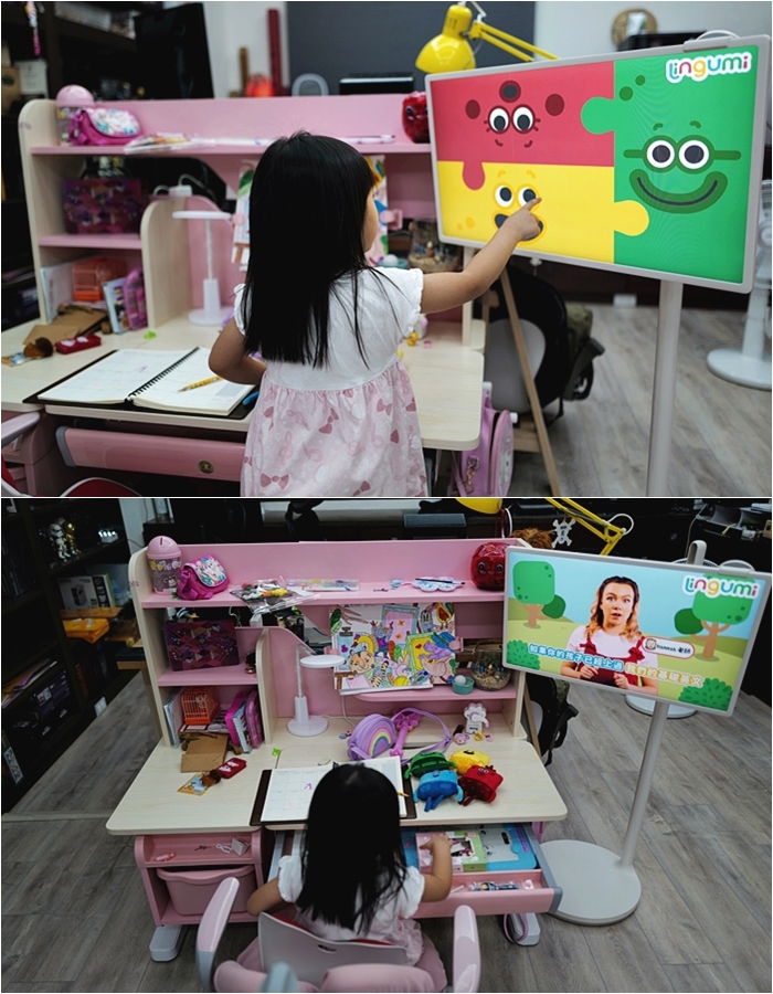 嬰皇目前正在學習英語教材,可觸控螢幕也可以增加學習互動的樂趣,且跟老師視訊交談也會更方便,看任何的教材也不用瞇著眼睛看小平板,,非常方便呢。