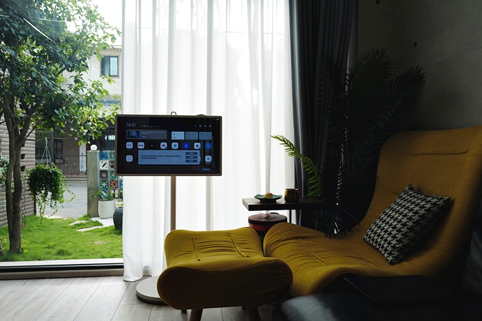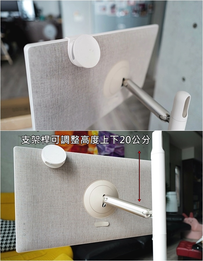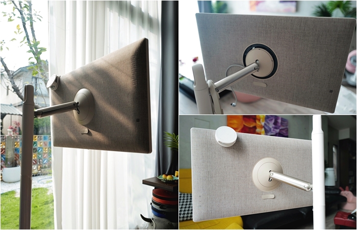 螢幕背面的織布皮面質感非常好,不管家理的風格如何都非常好搭配,任何角度看都覺得超美。