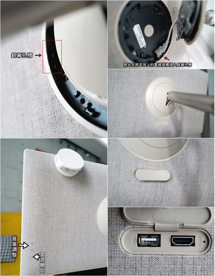 需要注意的小地方就是螢幕跟支架要合體前,一定要先將支架的插槽插進螢幕的孔槽裡面 ,確定插好後再依照說明書的步驟將螢幕與立架合體,剩下其他的安裝步驟都算簡單。
